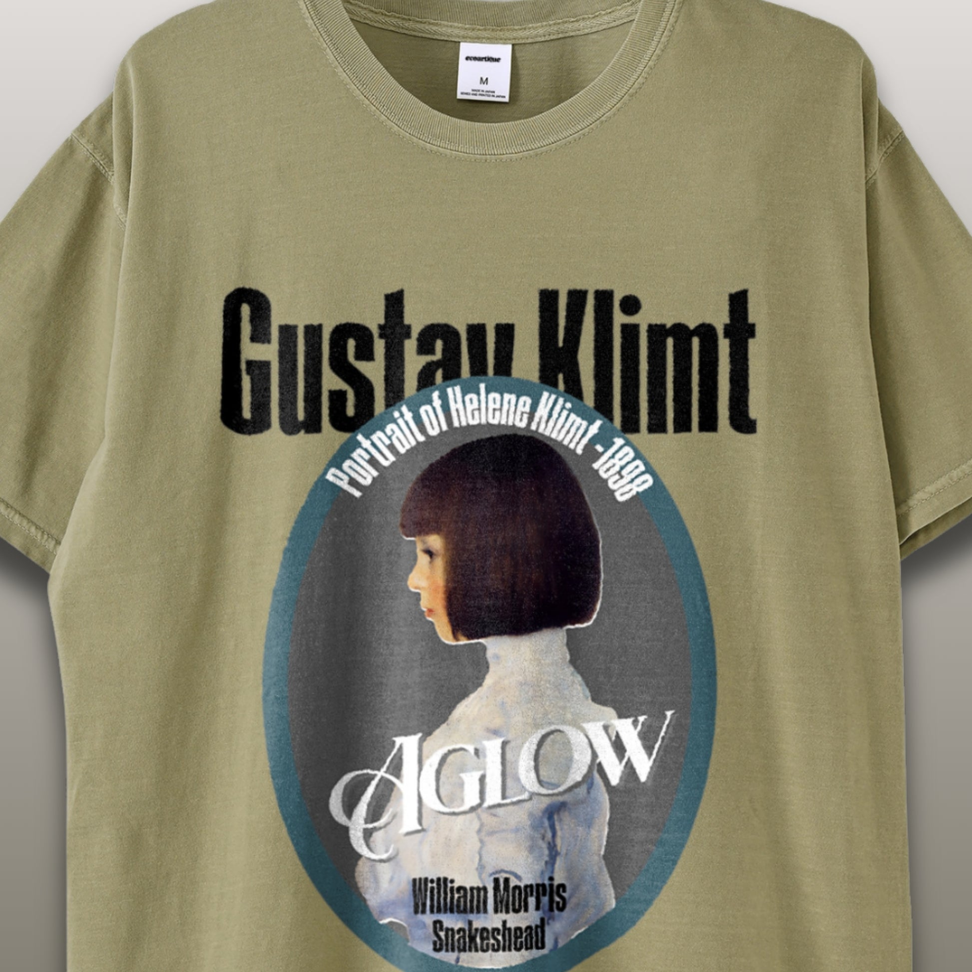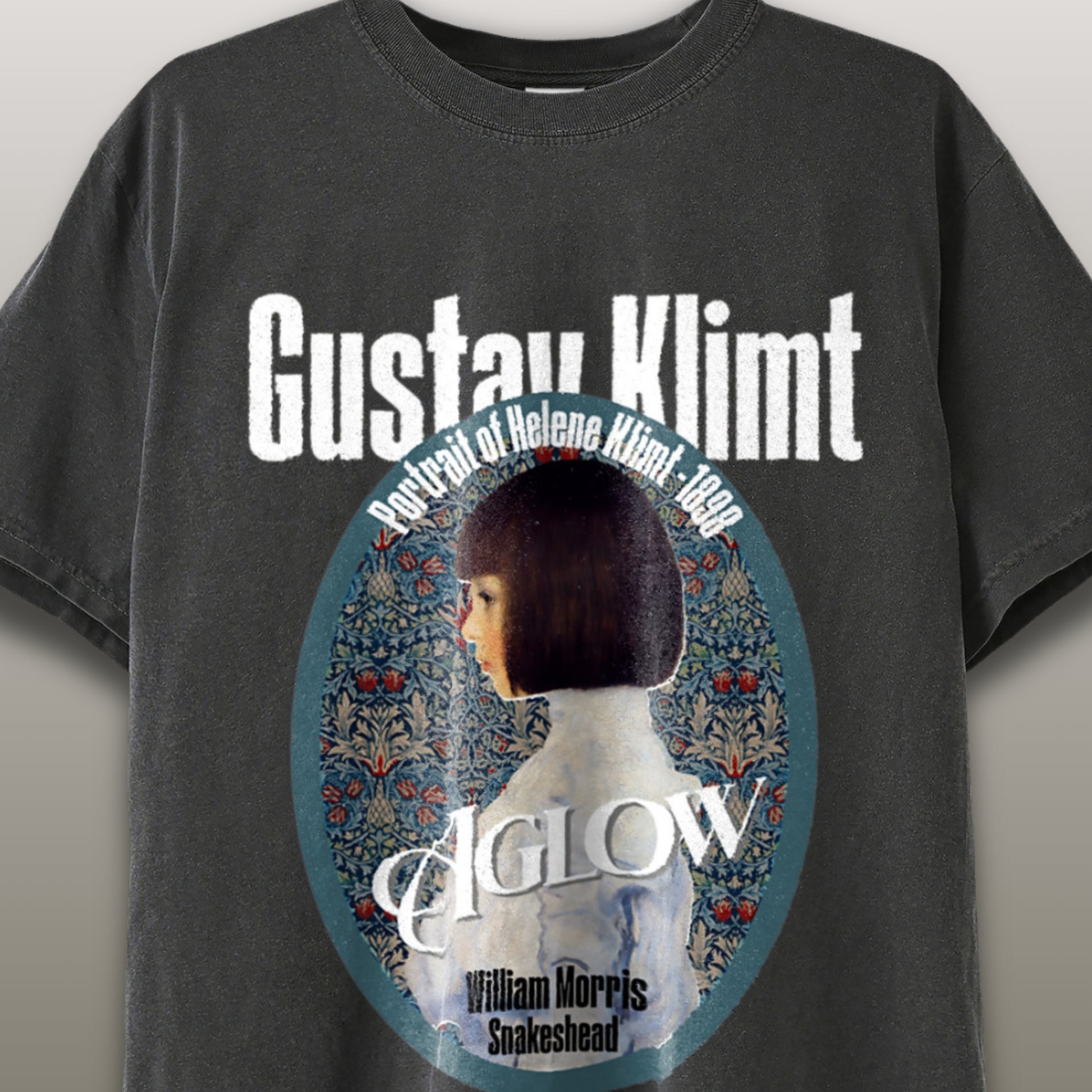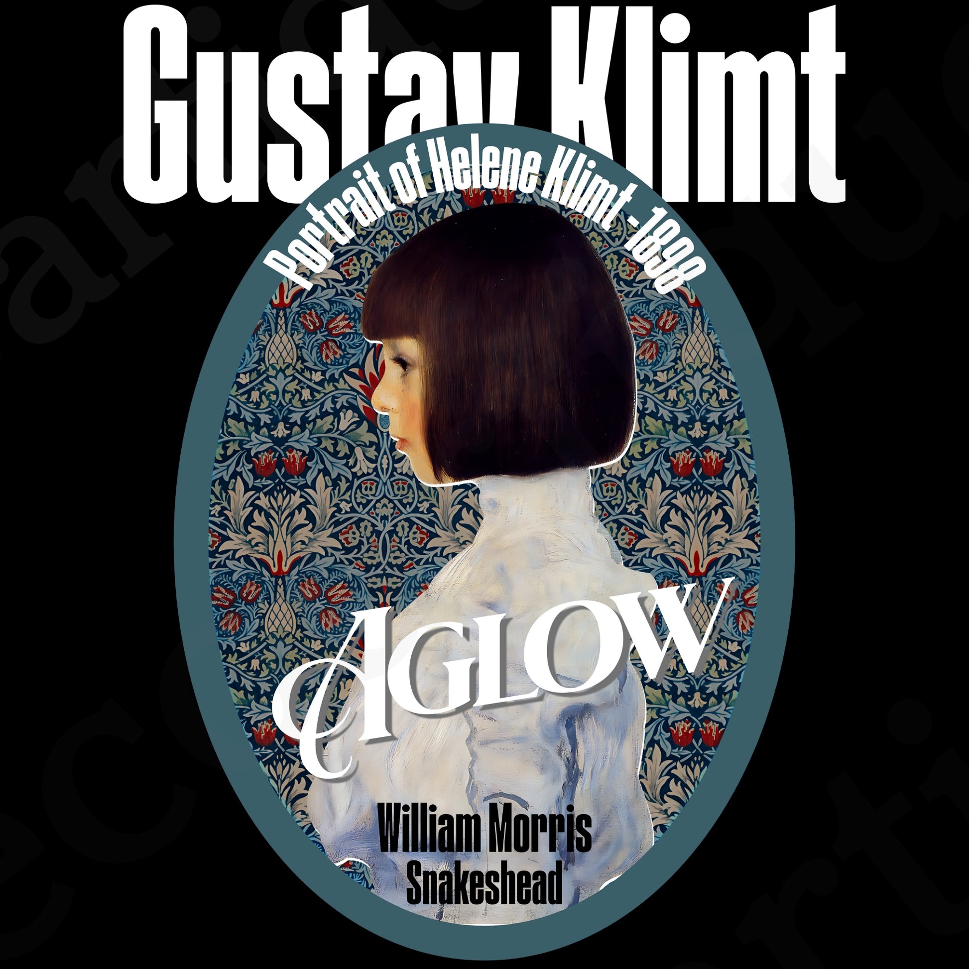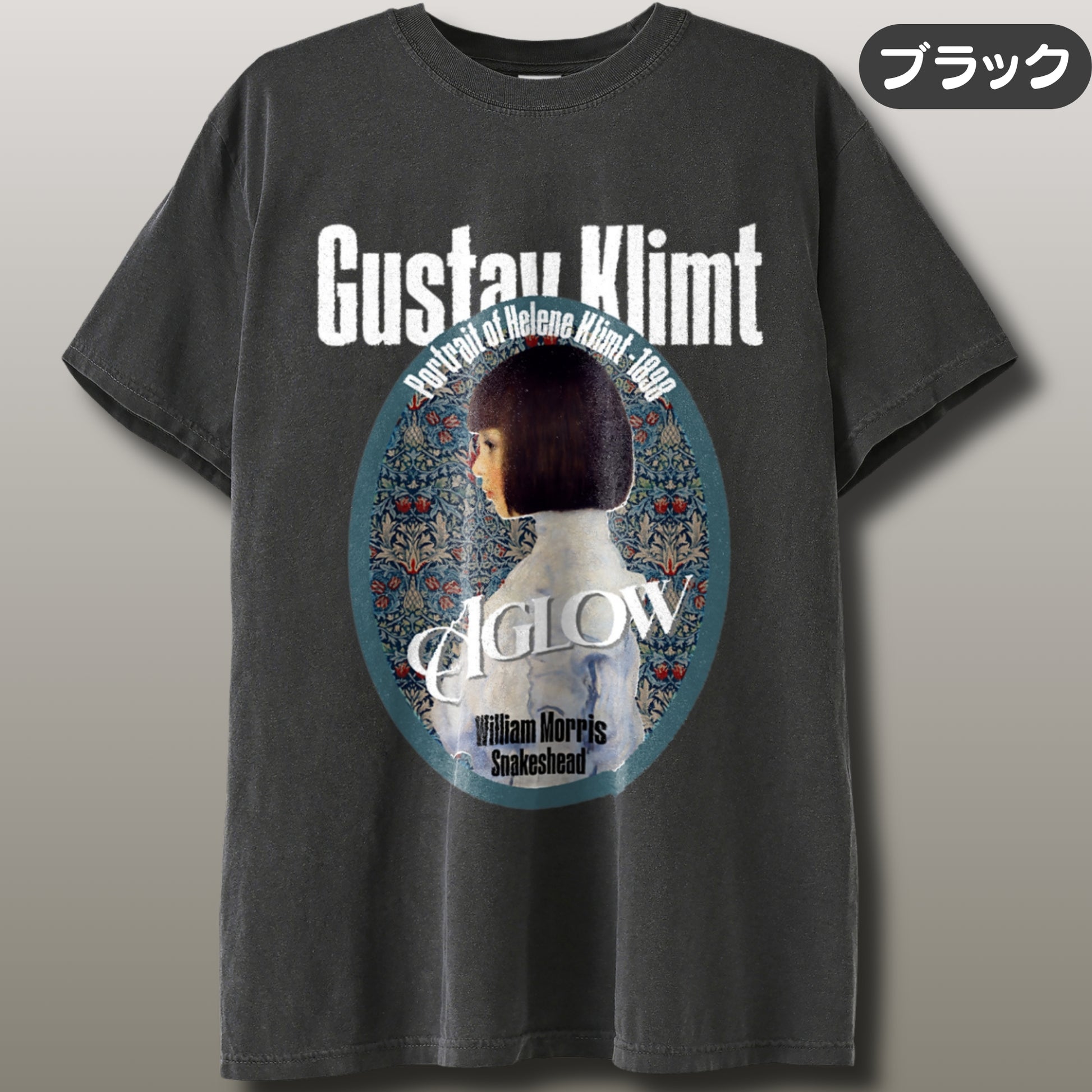 ⬛ Design 夜の静寂に包まれたダークトーンに、クリムトの繊細な筆致とモリスの植物装飾がほのかに浮かぶ一枚。 深いブラックを背景に無言のまなざしが際立ち、静と動の対比が余韻を生む構成です。