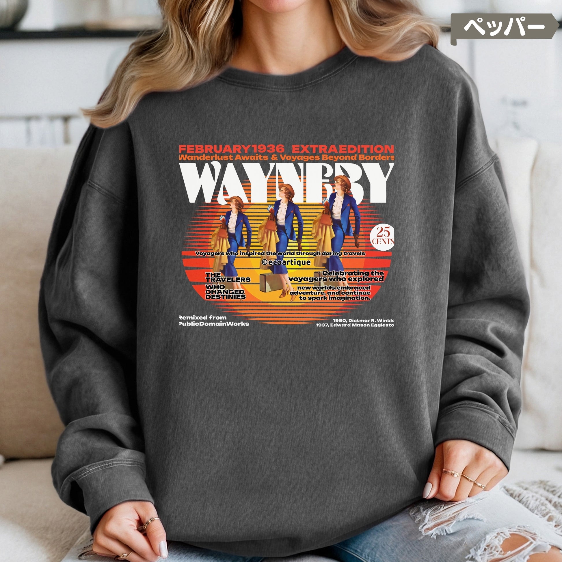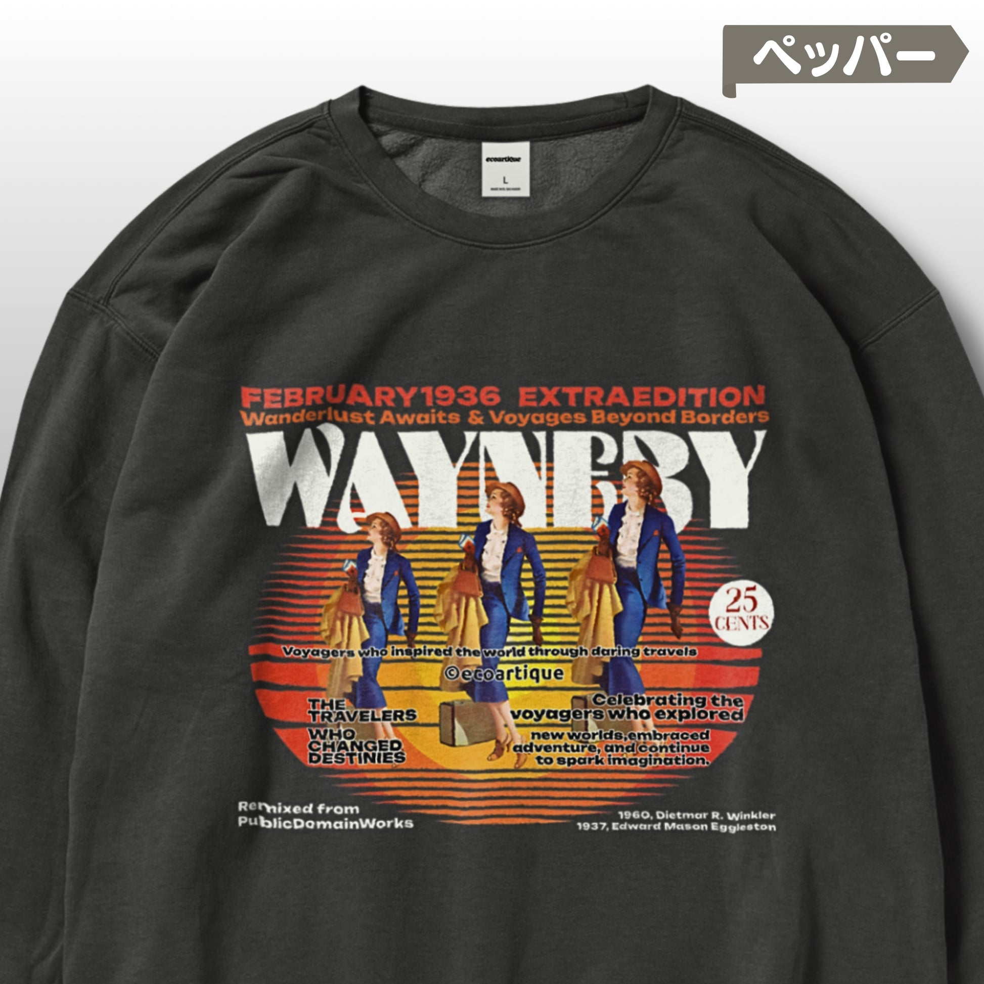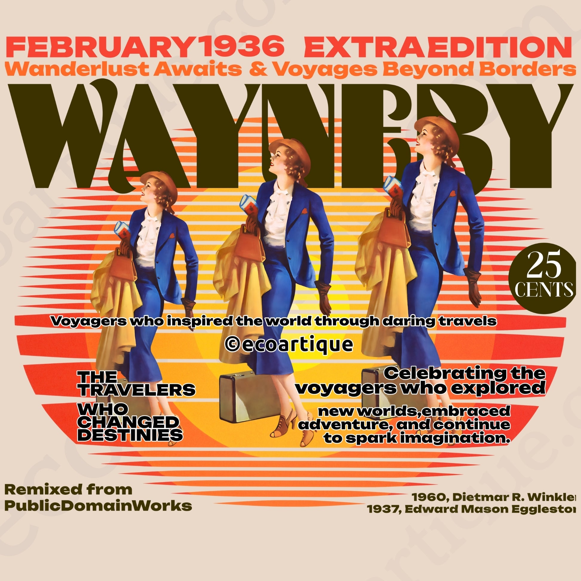 🎭“Wanderlust Awaits & Voyages Beyond Borders”を掲げたこの架空雑誌『WAYNERY』は、1930年代の旅路が交差する記憶を纏い、色褪せたヴィンテージ感とアメリカン・スピリットが息づく一枚です。
