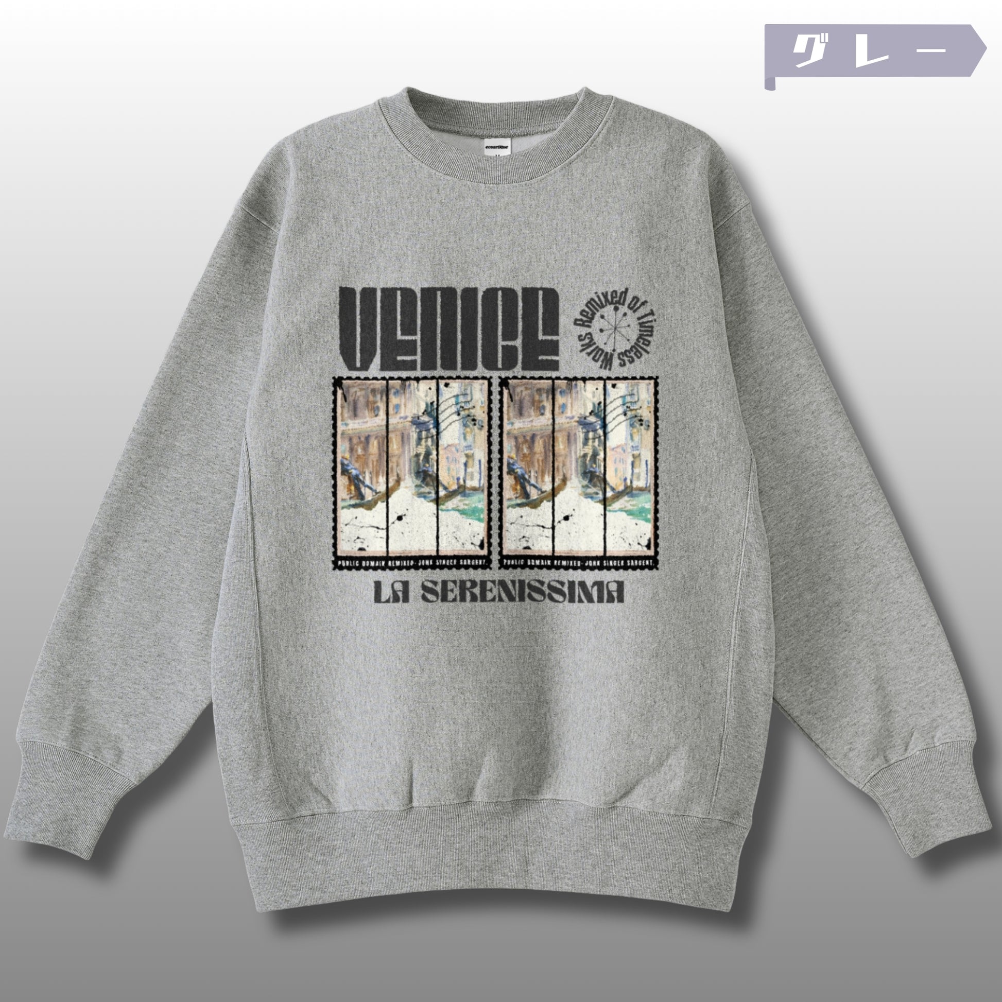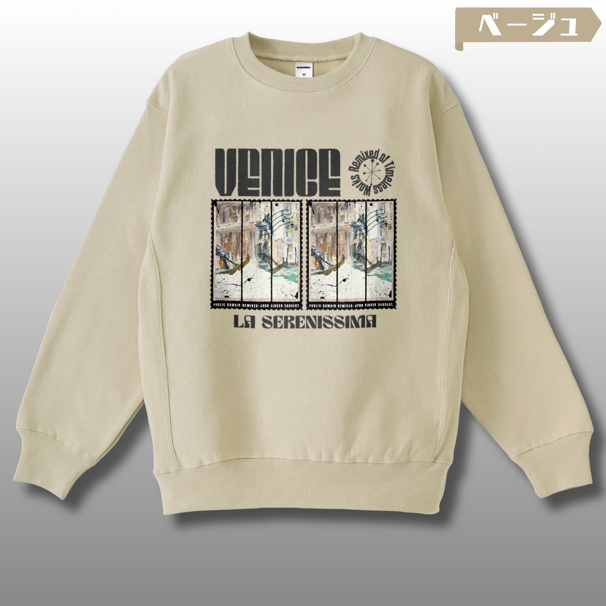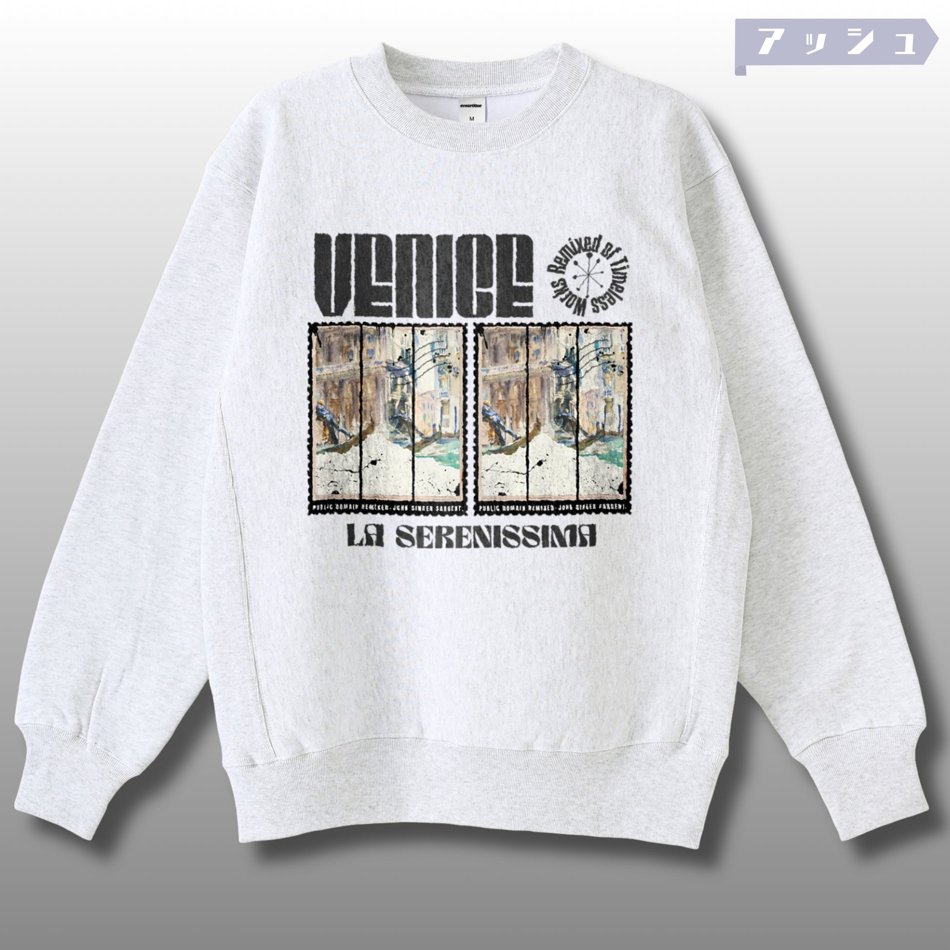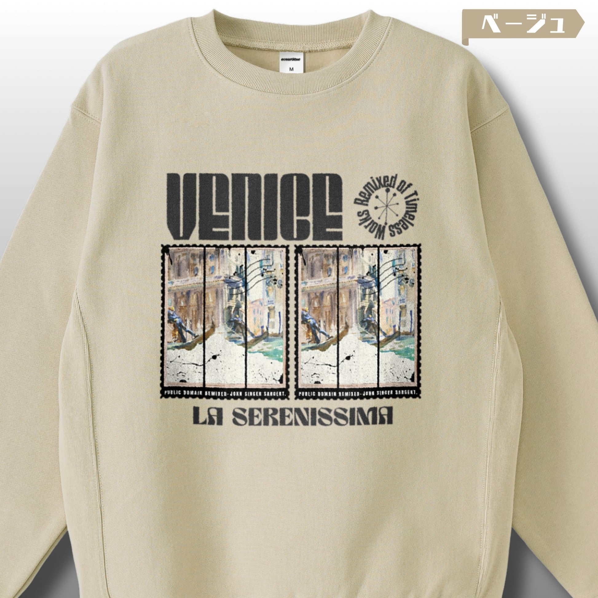 🎭"Venice"の静謐な水面を切り取ったジョン・シンガー・サージェントの一枚が、La Serenissima――栄光のヴェネツィア共和国の記憶とともに、12オンス裏起毛スウェットで時を越えて蘇る。Remixed of Timeless Works。