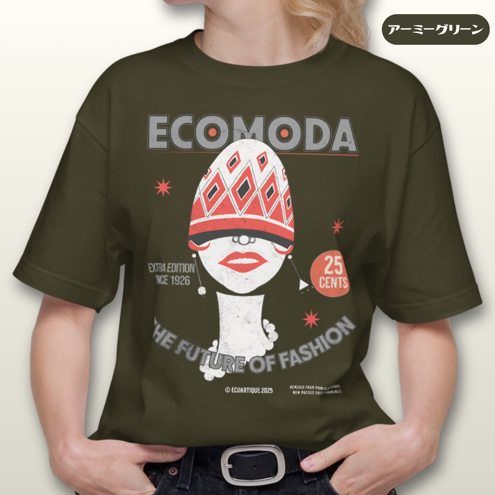 🎭"ECOMODA – The Future of Fashion"という架空マガジンのカバーデザインをリミックスし、1926年の「EXTRA EDITION」から届いたかのような掘り出し感を放つ一枚。