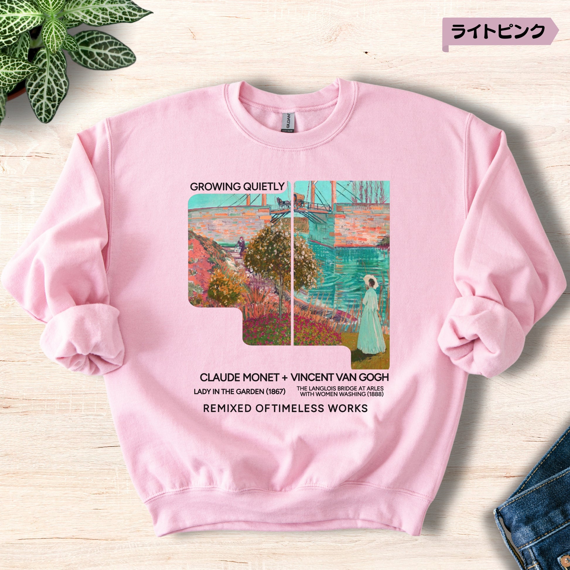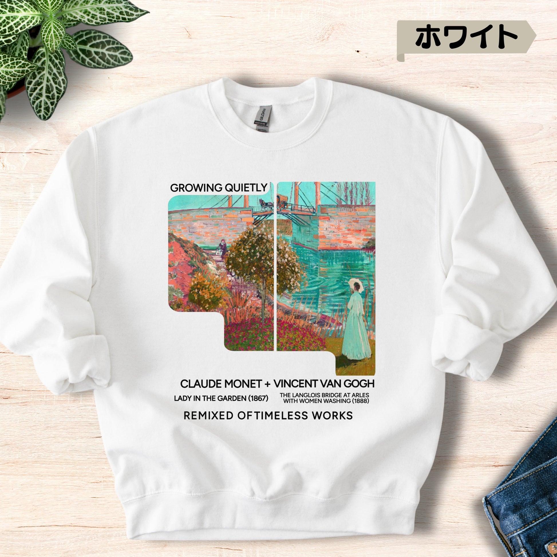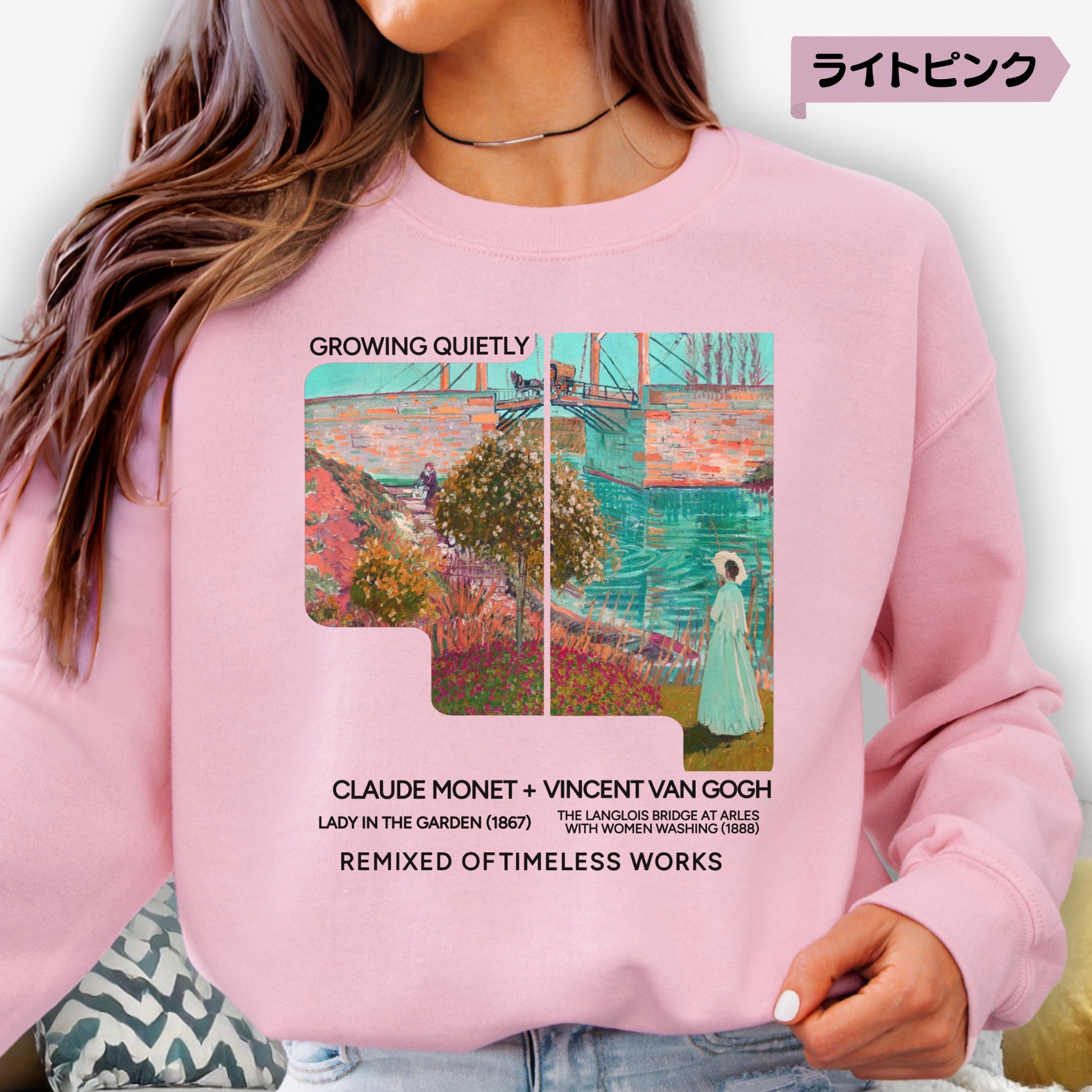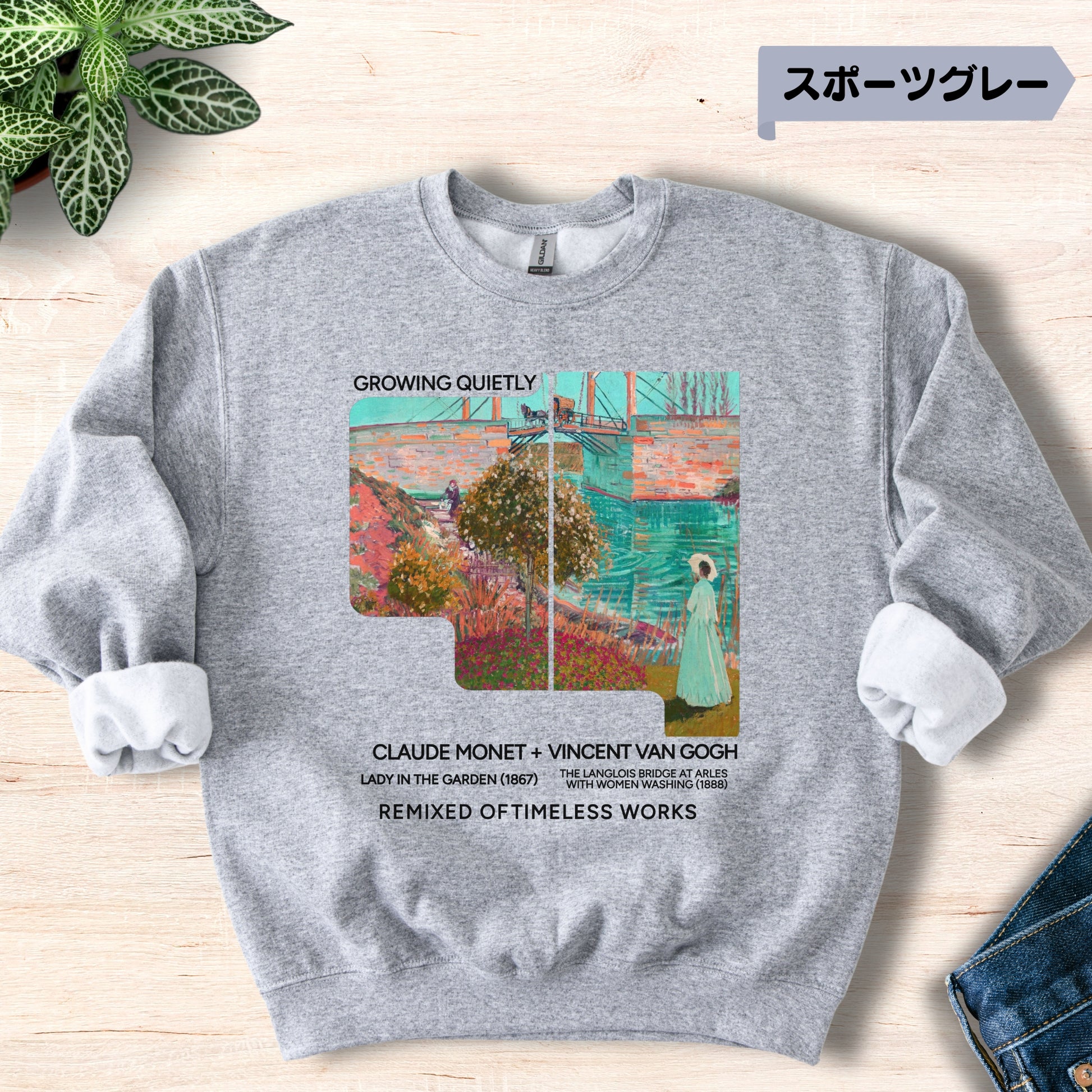 🎭“Growing quietly―静かに成長している”という静謐なアファメーションが、視覚の中にそっと溶け込むように構図へとリミックスされたスウェット。モネとゴッホという異なる時代の感情を、静かに、しかし確かに重ねていく。