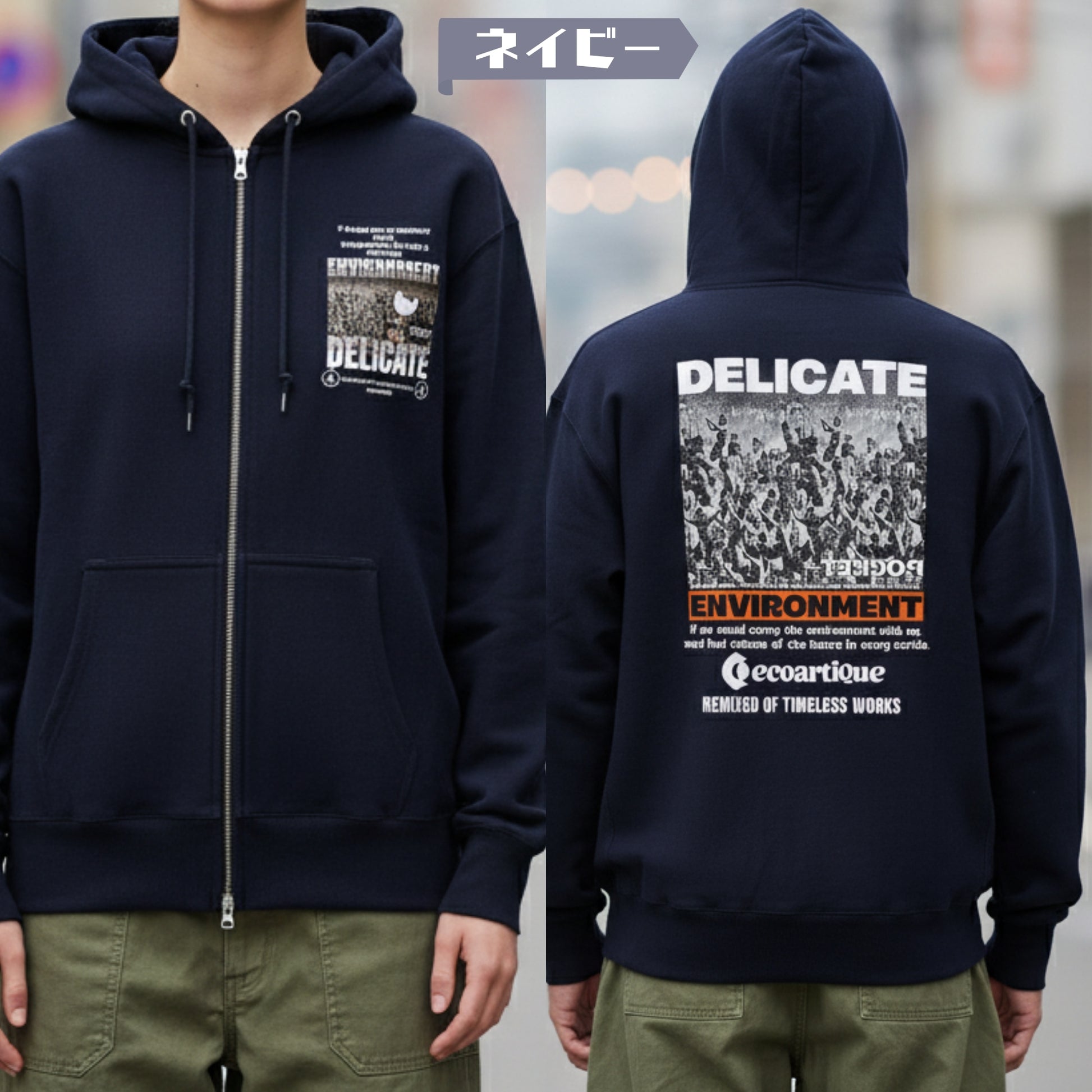 パーカー| 裏起毛 プレミアム Wジップアップ サイドパネル - 12オンス | 両面プリント | 男女兼用 | ユニセックス | ENVIRONMENT-両面プリント
