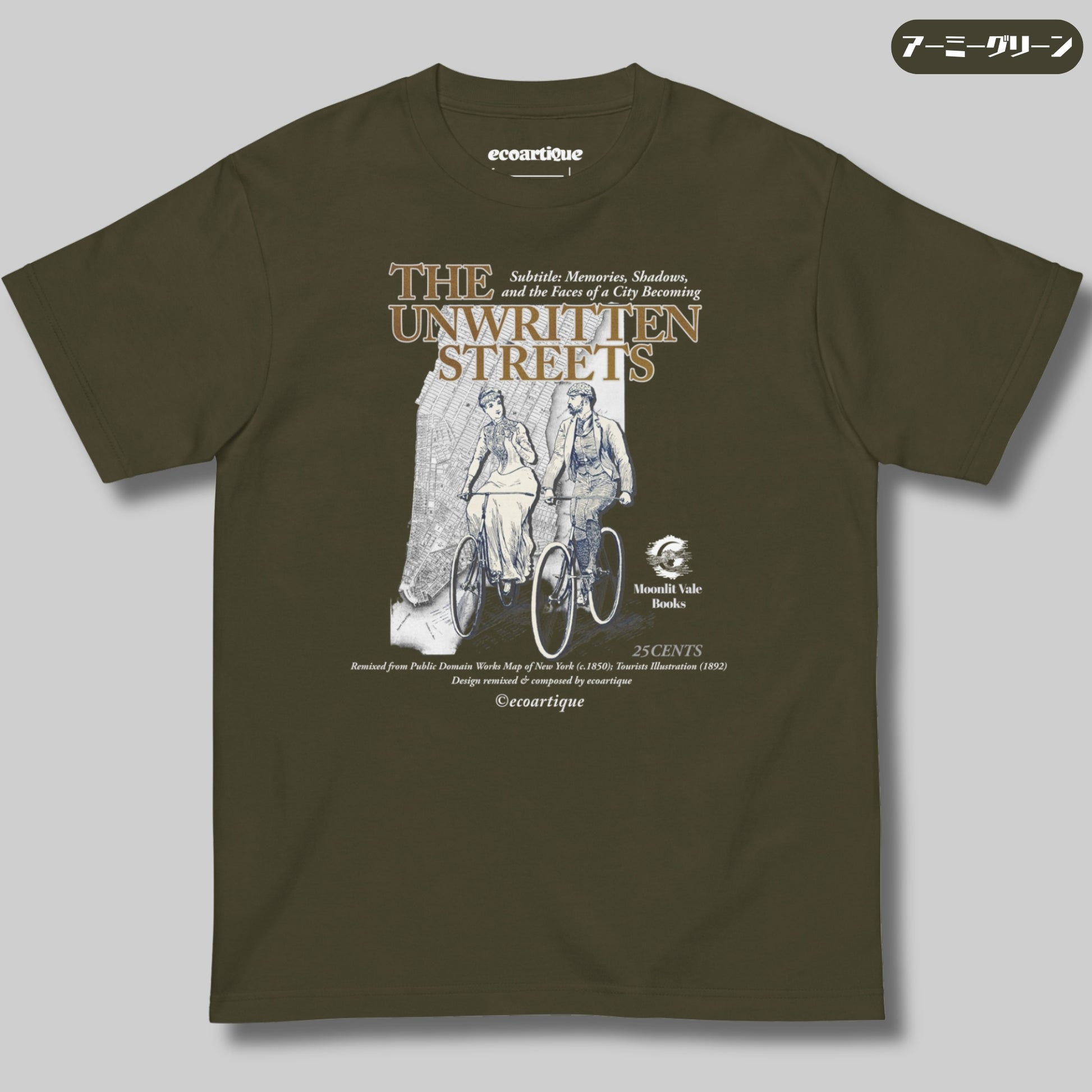 🎭“THE UNWRITTEN STREETS”──まだ誰も記さない都市の通りをめぐって、1890年代のサイクリストたちが古地図の中を漂う。まるで古本屋の奥に眠っていた書籍の表紙のように、このアートワークは都市の記憶と影を紡ぎ出す一枚。
